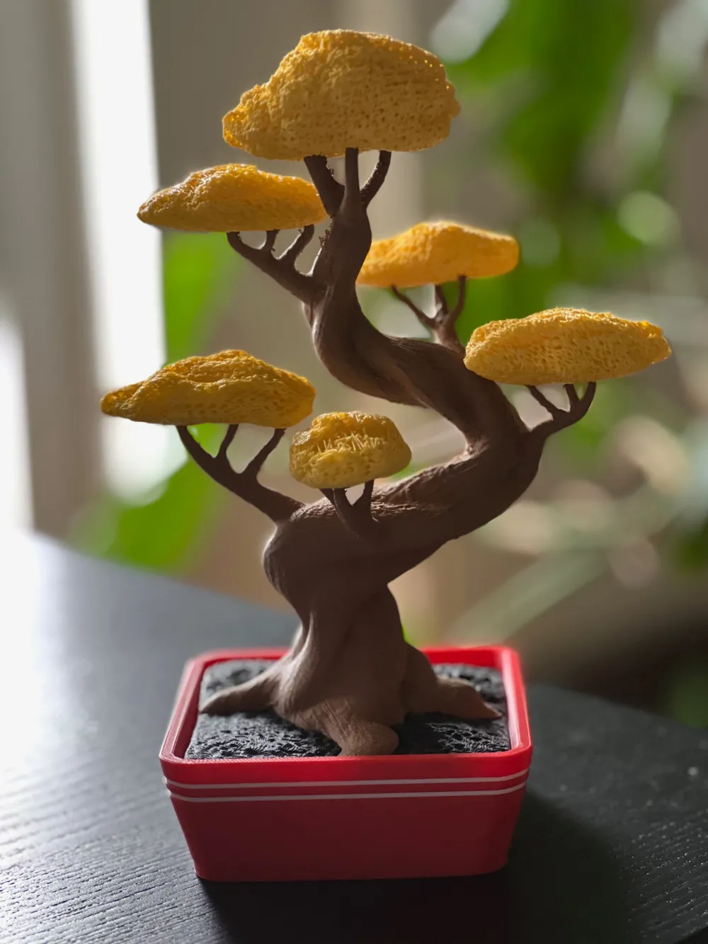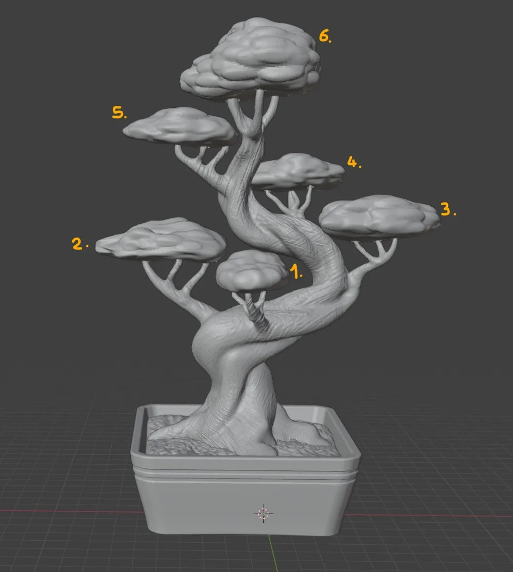 Meu segundo Bonsai está aqui. Após o apoio esmagador que o primeiro recebeu, decidi fazer um novo com um belo tronco retorcido. Os aglomerados de folhagem são numerados no projeto, mas a regra básica é que eles são organizados na placa pela sua altura na árvore. Além disso, os furos estão muito mais visíveis agora. Ele se encaixa no contêiner Sci-Fi se você descartar o vaso e imprimir apenas a placa de base especial. Está na seção STL de downloads. Se não estiver usando o arquivo de projeto BambuLab (3mf): folhagem: zero perímetros, zero camadas superiores e inferiores, suportes de árvore automáticos apenas na placa de construção, distância Z superior para 0.3, preenchimento giroidal 25% árvore: imprime bem sem suportes vaso e placa de base: sem suportes necessários
